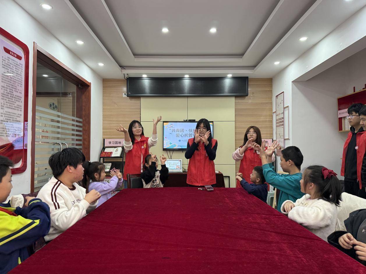 志愿者教孩子们学习新年主题手势舞。张子衡摄