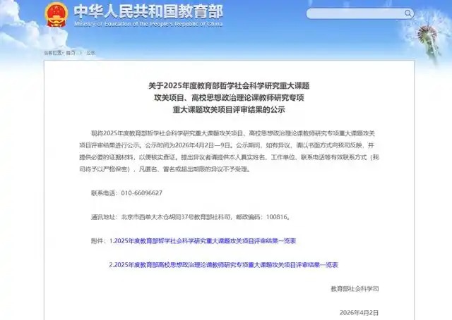 4月2日体育游戏app平台,教授部社会科学司公示2025年度教授部形而上学社会科学磋磨紧要课题攻关技俩、高校念念想政处表面课教师磋磨专项紧要课题攻关技俩评审效果。