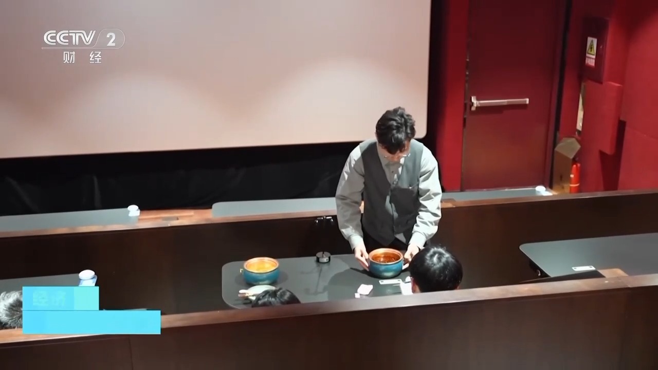 在江苏苏州的这家影院,不仅把餐桌、点餐二维码引入了影厅,还立异改进了一间有利的暖锅影厅。记者采访时恰恰晚饭时辰,不雅众取票入座,扫码点餐,就着轰轰烈烈的暖锅看电影,别有一番风韵。