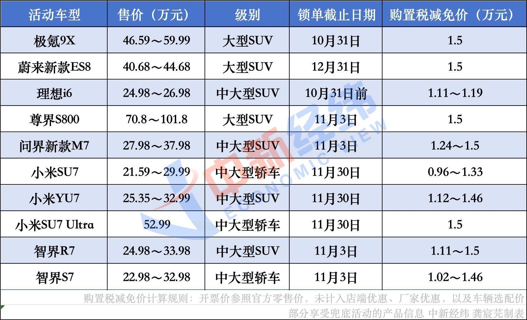 跟着新动力汽车购置税减半征收战术的控制,不少车企齐在近期发布了购置税兜底四肢,即对部分交车时候在2026年以后的热销新车,接纳限时补贴至高1.5万元购置税的举措,大部分四肢齐在11月甩手。