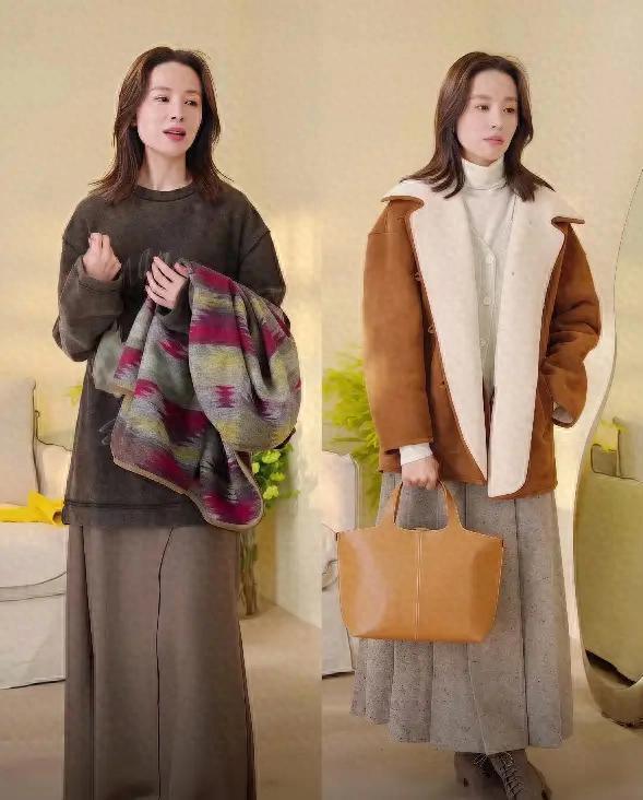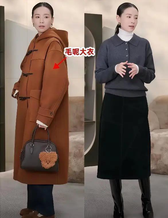 董洁的直播间,就礼聘了一件咖色的卫衣,搭配上浅咖色的直筒半身裙,概况是一件驼色的短外衣,内搭赤诚开衫和赤诚衫,加上一条燕麦色的压褶半身裙,这么的重迭穿搭增添端倪感,提高举座造型的品性