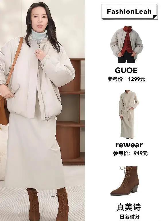 底下这1套穿衣打扮如实很有品性,诚然了,材质还有价钱也有点偏贵一些,举例这件杏色的羽绒服照旧进步千元的价钱,不外面料相比有光辉感,穿在身上也不显得肥美,很有品性。