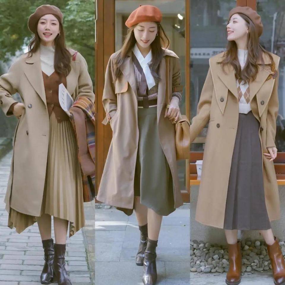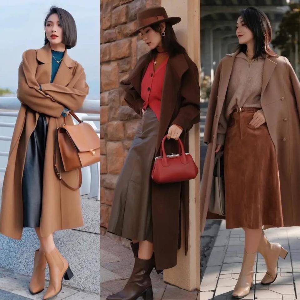 不外在礼聘鞋子也好,穿着也罢,色调一定要隧谈,材质要有品性,穿在身上智商提高气质和档次,举例底下这种浅驼色,深驼色的大衣外衣,再搭配上半身裙和短靴,好意思拉德色系的穿着组合,让你在这个阴寒的冬季变得愈加有活力。